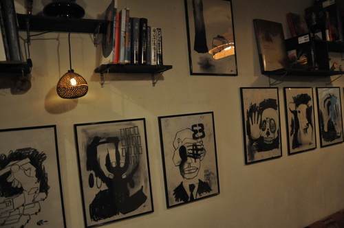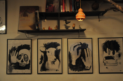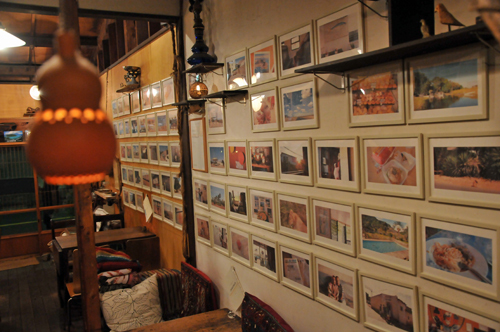 こんな具合に店内では常時旅の写真やドローイングが展示できます。