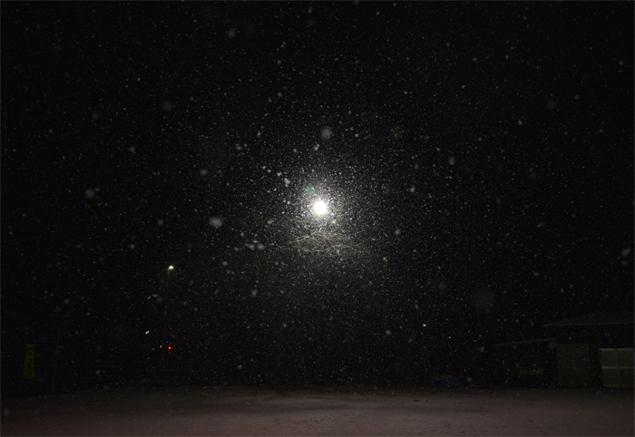 遠のいていく祭囃子、音無き雪世界、徐々に灯り始める街灯、コンビニ。