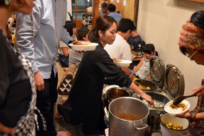鮫島さんのカレーが凄い!客家風イカカレー、ダル、サブジ、そして炊き込みご飯と全てがパーフェクトマサラ。私も含めお客さん皆さんチャクラ開いてしまいました。